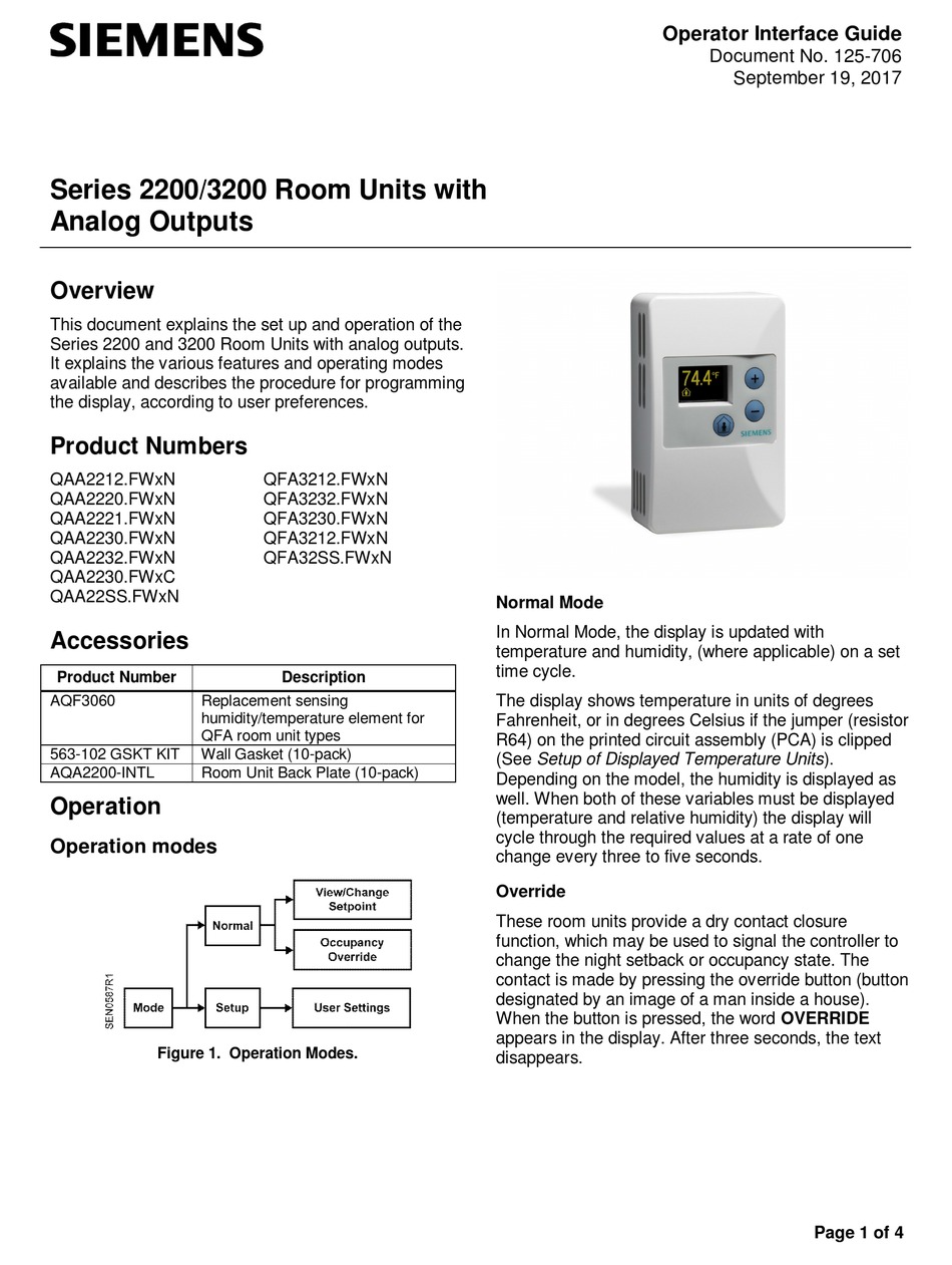 . Summary of Contents for Siemens. Hardware is included for. Siemens Industry Catalog - Building Technologies - HVAC products - RC NZ - GCM not in tree USA - QAA2212FWSN - Room Temp Sensor Platinum 1K Ohm.